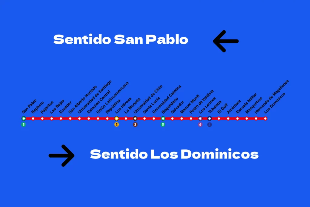 - Saindo de Providência, entre na estação da linha vermelha (Pedro de Valdívia ou Manuel Montt), no sentido San Pablo.